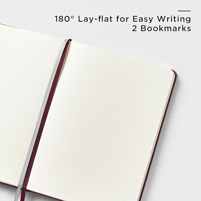 • 180° LAY-FLAT DESIGN: The lay-flat design allows for easy writing and ensures that you can utilize every page efficiently. Journaling, note-taking and planning has never been easier! 2 Bookmarks to help you find important content faster