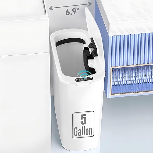 5 Gallon Motion Senor Bathroom Trash Can with Lid, Automatic Garbage Can Touchless, Smart Plastic Waste Basket for Narrow Spaces, Bathroom, Office, Bedroom, Living Room (White)