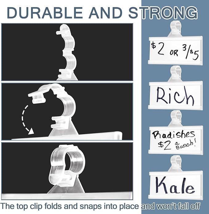 • Package includes 50 pieces plastic wire shelf label holders and 100 sheets matched white blank cards.