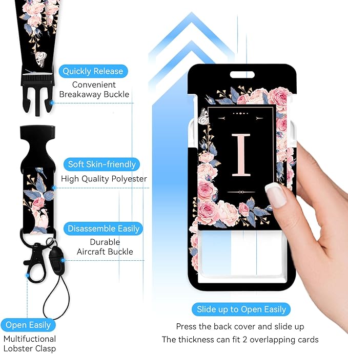 A-Z Badge Holder with Retractable Reel and Breakaway Lanyard Badge Clips Retractable Heavy Duty Badge Reel,Keychain,ID Holder with Breakaway Lanyard for School Nurse Office Teen I