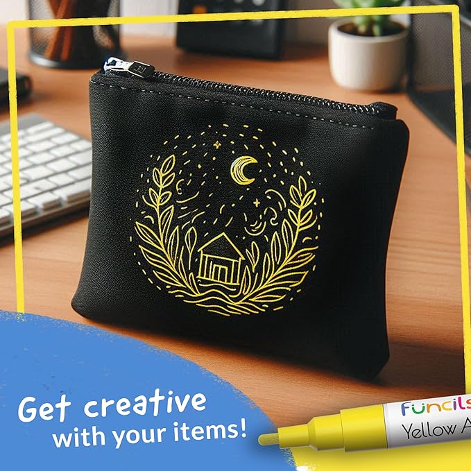 • Quick Drying and Water based - Your premium acrylic paint pen kit. Features smooth colors to produce true, consistent shades and are resistant to water, fading, and abrasion. Used as paint pens for wood, metal paint pen & yellow fabric marker.