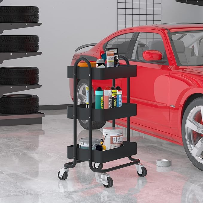 3-Tier Rolling Metal Storage Organizer,Mobile Utility Cart,Kitchen Storage Carts with Caster Wheels,Rolling Utility Cart Suitable for Office,Home,Kitchen,Garden๏ผ13.4"x18.1"x31"๏ผ Black