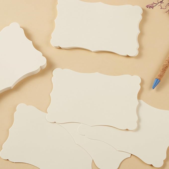 50 Pack Blank Kraft Cards Cardstock Thick Paper Brown Greeting Cards for DIY Gift Card Menus, Baby Shower and Wedding Invitations (Cream, 5x7IN)