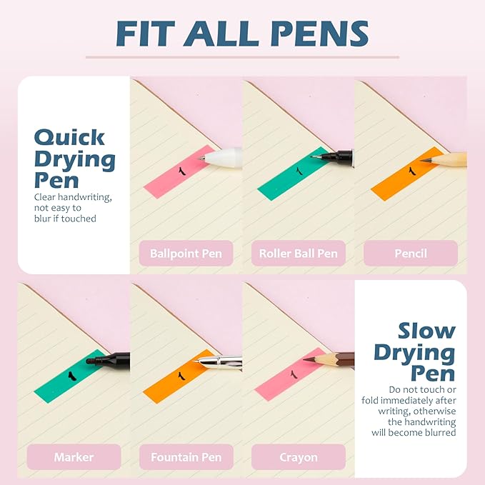 • Easy to use: These sticky tabs for annotating books are easy to paste and mark, easy to remove and reposition, without tearing paper or pages. You can use most pens, markers, highlighters, and pencils to write on reading labels.
