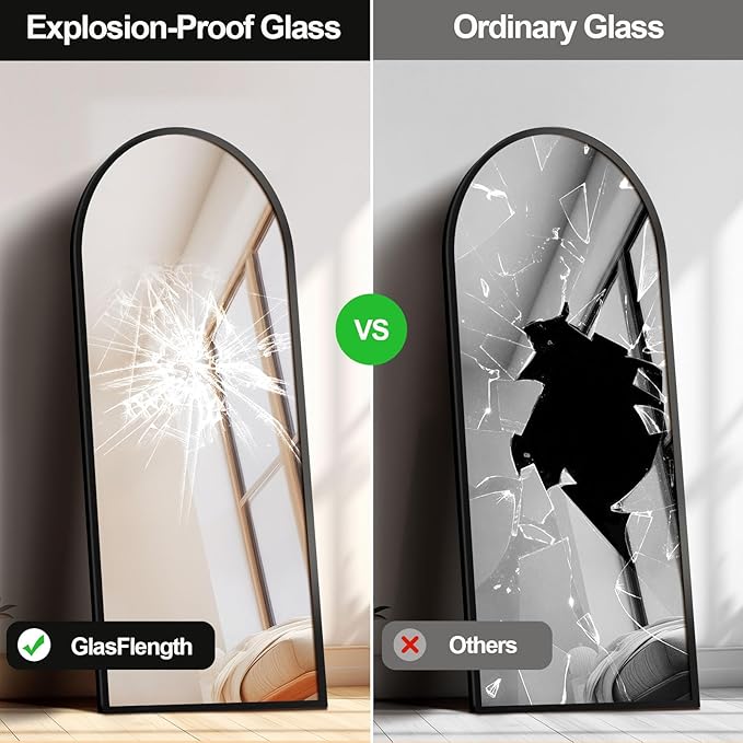 • Full-Body Reflection: The standing mirror is 64" in length and 21" in width, large enough for you to see your entire figure in a single glance. It's more than a mirror—it's a decorative statement piece that lifts your space and mood