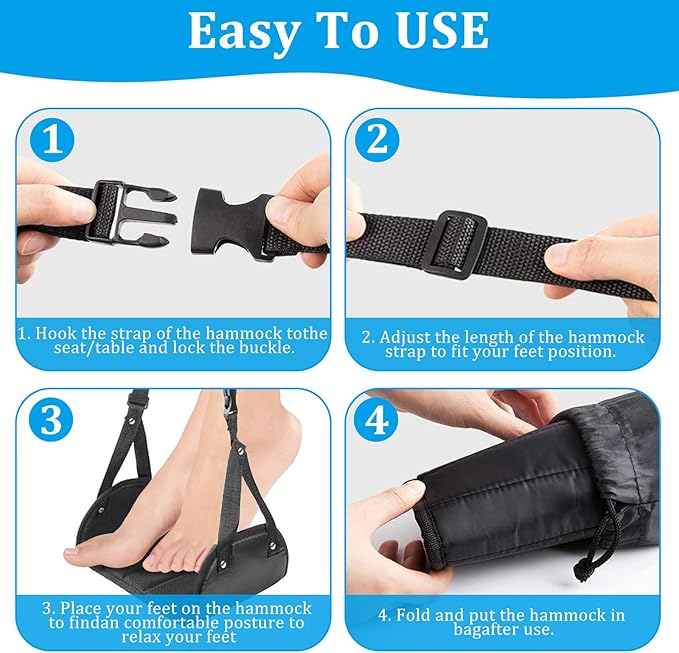 • 4 Pack Airplane Foot Hammock - This set comes with 4 pack airplane footrest, perfect for couples, friends, and family to enjoy first-class comfort on long flights. Essential for air travel, it guarantees relaxation and ease during your journey.