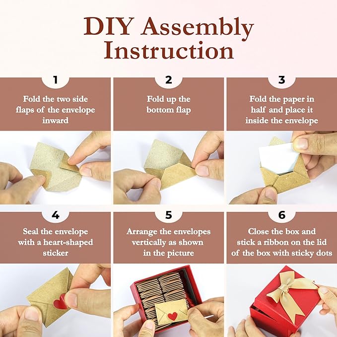 • DIY Love Gifts for Him Her: includes 60 tiny envelopes, 60 love note papers for matching couples stuff (45 pre-written romantic notes and 15 blank notes), 1 box with a bow tie for creating cool anniversary gifts for couples or vday gifts for him