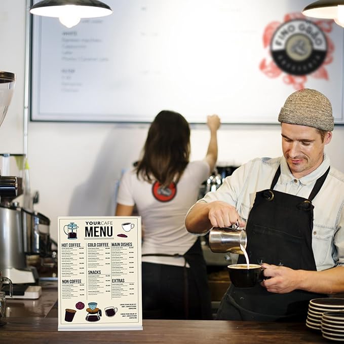 - Superior Material: WAEFNO acrylic sign holder is made of high quality acrylic material, which makes it look crystal clear, allowing you to get a better effect when displaying ads and menus, The simple and impurity-free appearance makes it look elegant. This sign holder will not become yellow, blurred or warped. If the surface gets dirty, it can be easily wiped clean.