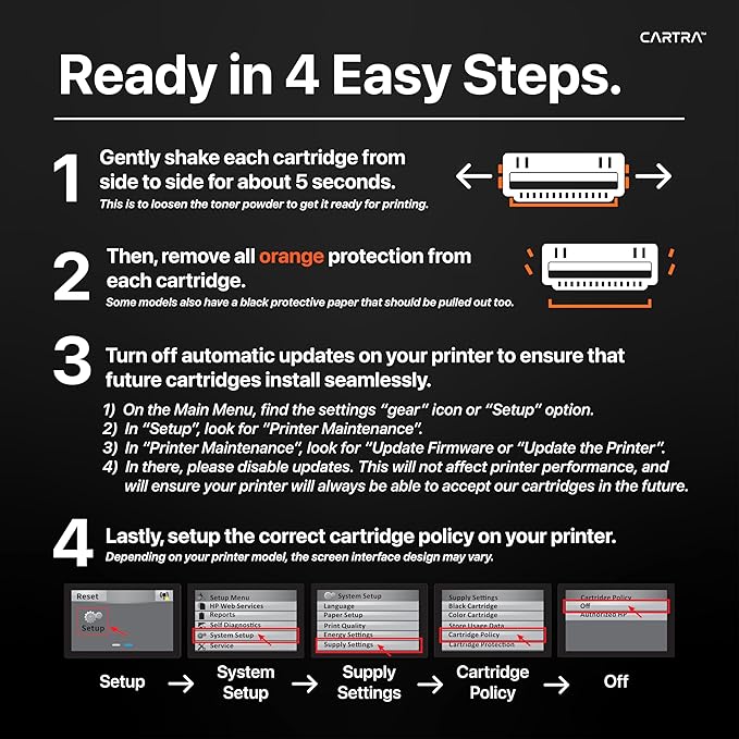 - With Chip & Toner Monitoring – Pre-installed smart chips eliminate the need to transfer OEM chips. Real-time 508A laser ink tracking on your HP printers ensures you're always stocked with essential color printer office supplies