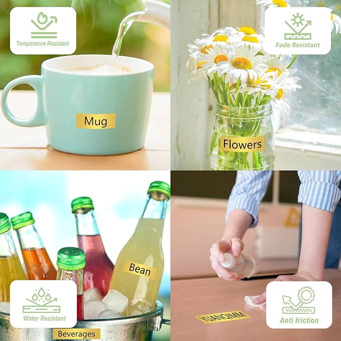 • Product Size: Width: 18mm 0.7 inch, Length: 26.2 feet (8m) for each 18mm 0.7 inch laminated gold label tape