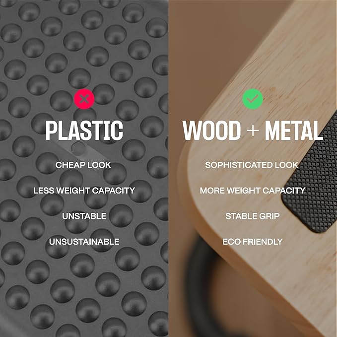 • PREMIUM BUILD QUALITY - Crafted from high-quality solid wood and carbon steel, this footstool combines durability with a sleek, modern design, perfectly complementing your stylish workspace.