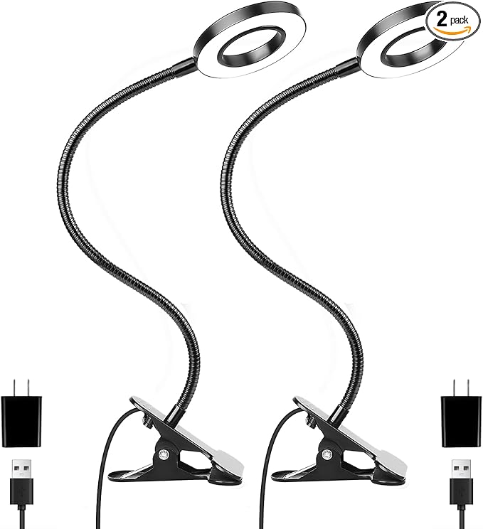 Desk Clip on Lamp for Reading Home Office, with 5V 2A Adapter, 10 Dimmable Brightness 3 Modes, Clamp Reading Light for Bed Headboard, Craft (2packs, Black)…