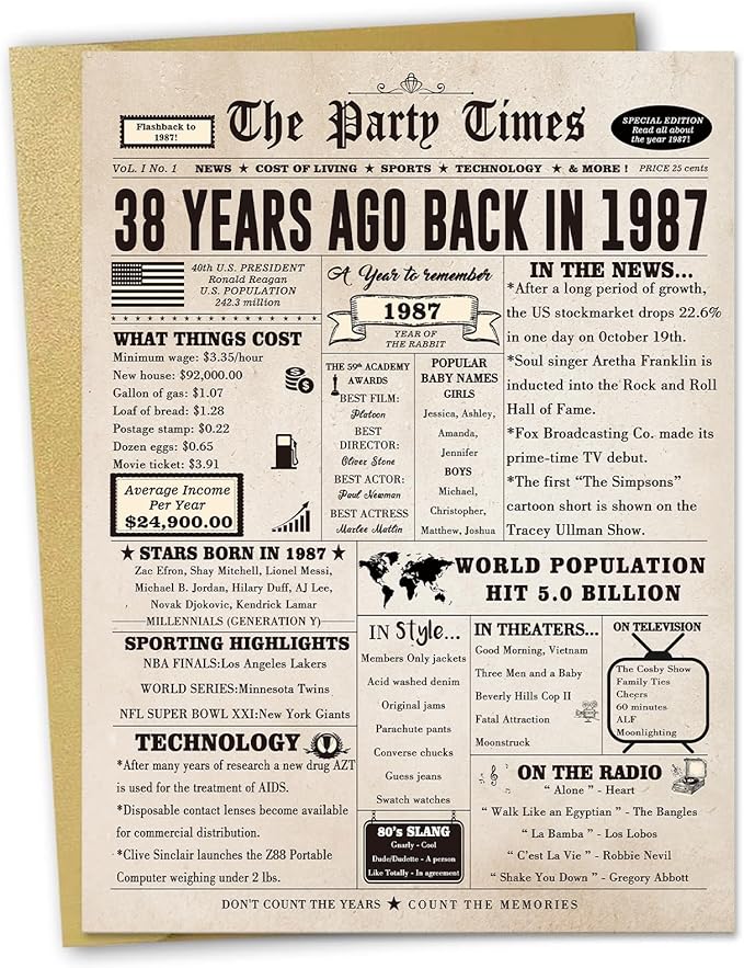 • 【Product Size】A 10.6 x 7.9 inches 38 year old birthday card stands out for its oversized size. It comes with an envelope for easy mailing or gifting.