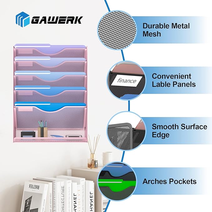 • ✏️ Sturdy Metal Structure: Wall file rack organizer is made of high-quality metal material with sturdy metal construction and durable powder-coated surface.