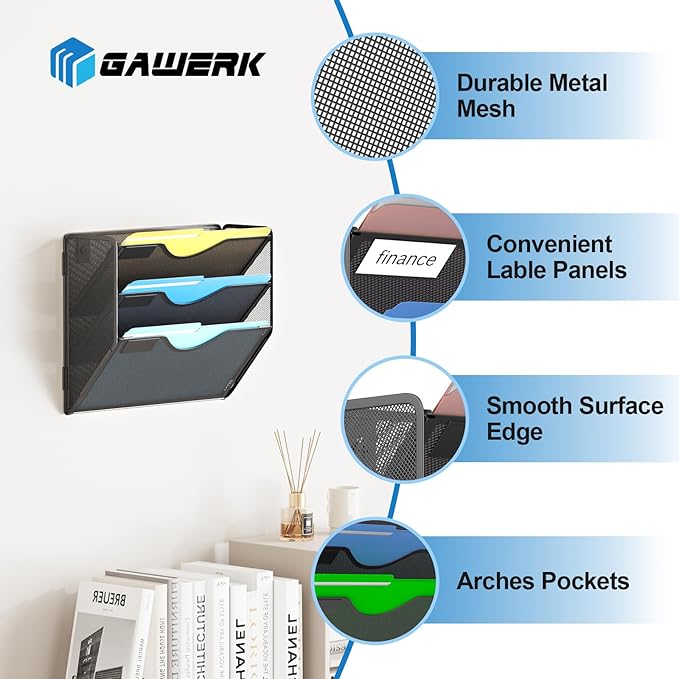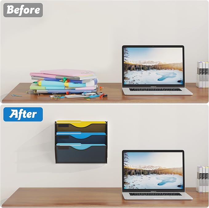 • ✏️ Easy Access to Files: The wall mounted file organizer features an arched design for easy access to the contents of your stored files.