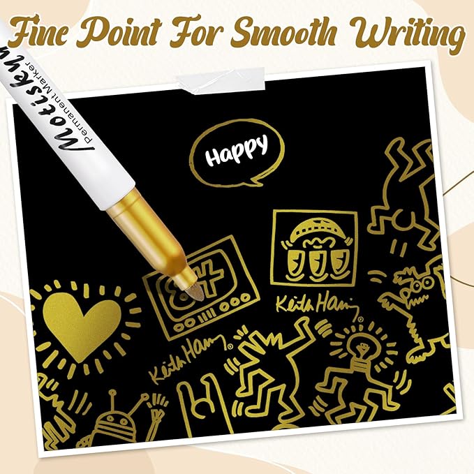 • Nice for Most Surfaces: these gold pens work well on most surfaces, such as paper, wood, enamel, chalkboards, canvas, wood, brick, stone, glass, mirrors, windows, metal, plastic, ceramic, fabric, etc.; Decorate your clothes, gift bags, shoes, and personalize coasters, coffee mugs, journals and other crafts