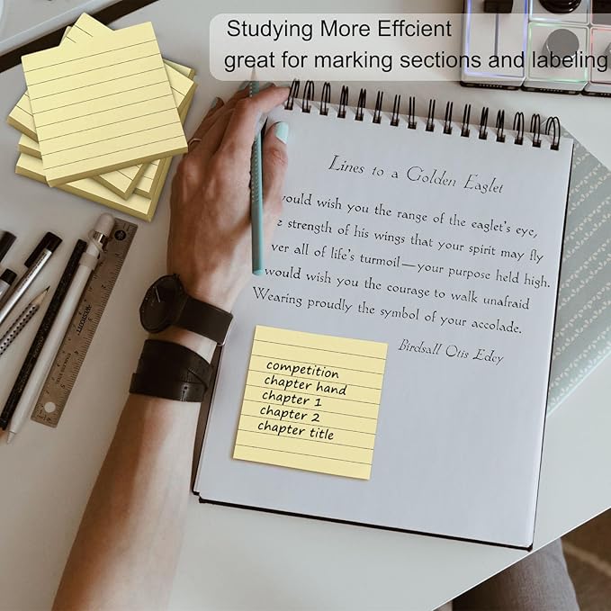 • LINED STICKY NOTES: Whether you need to take notes during a meeting or want to leave a reminder for yourself, yellow note pads are the perfect solution. They are easy to use and can be repositioned at any time without leaving any residue or damage.