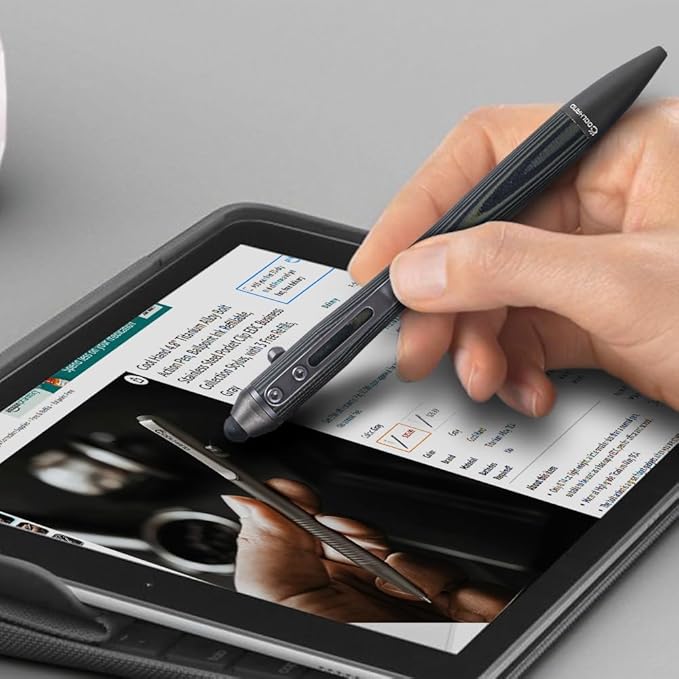 - 3. Featuring a replaceable rubber tip for use on touchscreens. Works on tablets, phones and readers with touch-screens.