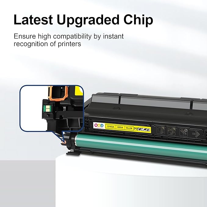 • High Page Yield: 12,500 Pages Compatible for 655A black toner and 10,500 Pages per Color toner at 5% coverage (Letter/A4). The inbuilt chip can indicate the toner level left and you can arrange a new replacement when needed