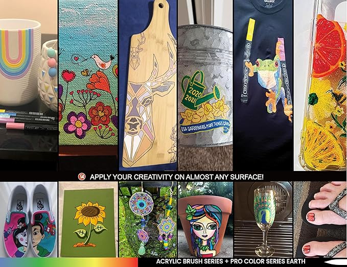 - ✔️FLEXIBLE BRUSH TIP – The pens are ready to paint without having to shake and prime the tips like traditional paint pens. The flexible brush tip makes color blending easier and can vary from a thin 1mm up to a bold 7mm line width, depending on the pressure applied. Paint pens are great for avoiding the mess that typically comes with cleaning brushes and pouring paint and are easy to travel with.
