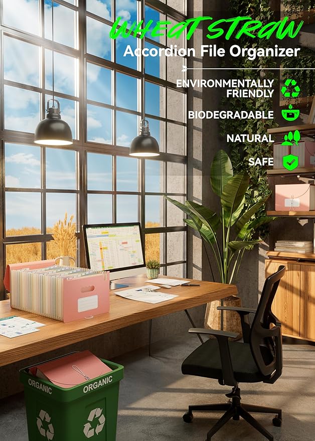- 【Wheat Straw Material】Ecostash's Wheat Straw Accordion File Organizer are BPA-free, making them safer and healthier compared to plastic and paper file folders. Unlike plastic and paper hanging folders, wheat straw material is sourced from renewable agricultural waste, reducing dependence on petrochemical plastics and forest logging. This helps reduce greenhouse gas emissions, making a collective contribution to protecting the Earth's ecology