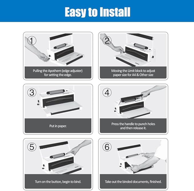 • 【Wide Application】The spiral coil binding machine is suitable for hole punch binding of books, picture books, notebooks, copywriting, etc. Suitable for A4 / A5 size paper or Smaller Sizes. Can be widely used in printing shops, offices, schools, homes and other places.