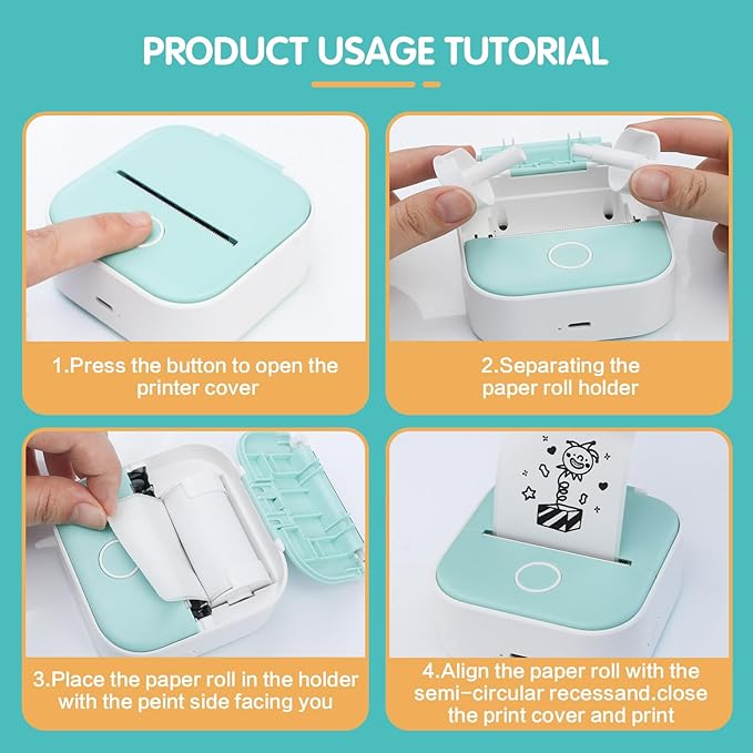 - [Convenient to Use] Mini photo printer labels is a thermal paper, and no ink is required for clear printing. The thermal paper roll is compatible with most 53mm mini thermal printers on the market. When placing the paper in the printer holder, please tightly the paper roll first!