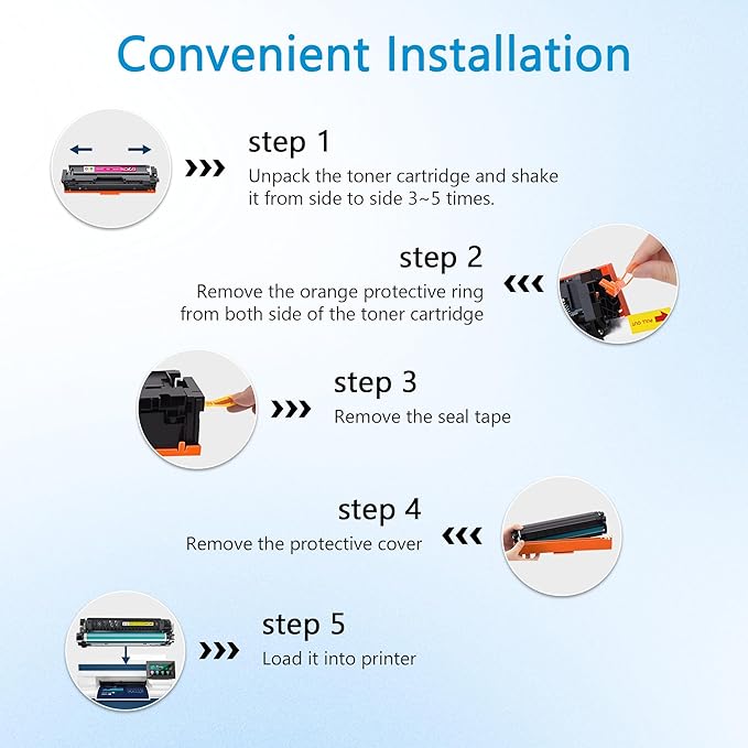 • Latest Chip: 210A toner cartridges adopt latest upgraded chip for instant recognition by printers and perfect compatibility