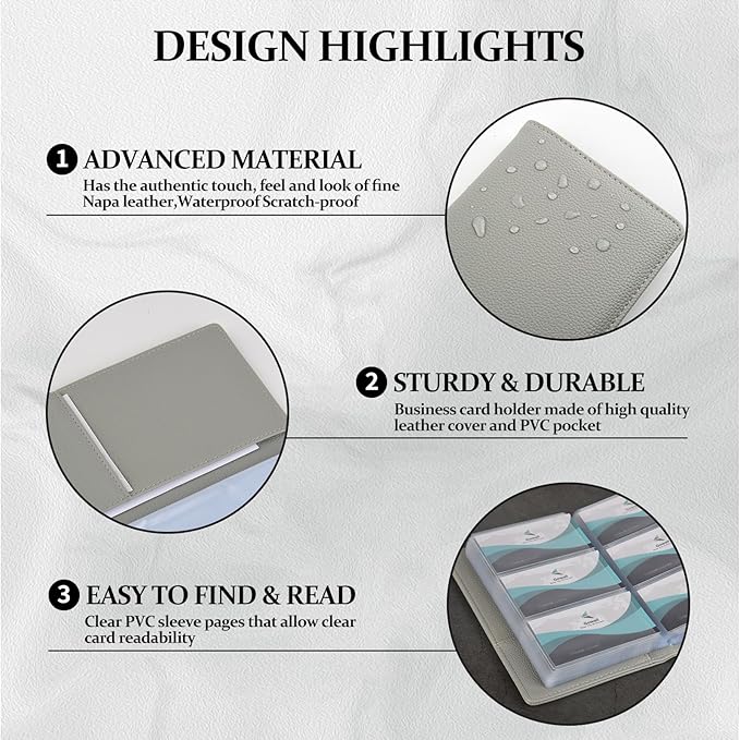 • EASY TO USE: Card holder book made of high-quality leather cover and transparent PVC pocket sheets allow you to quickly access the card. With this business card storage, all cards are together and can be stored safely.