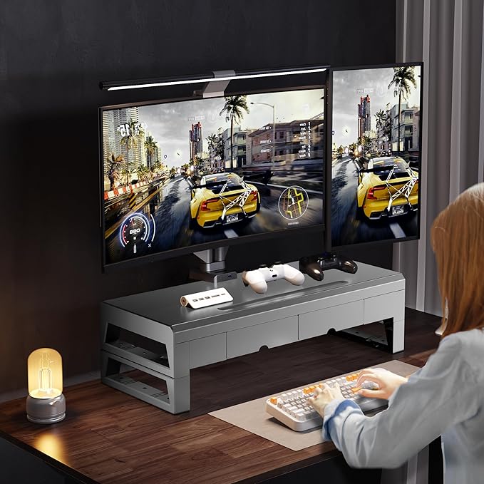 Computer monitor stand with 2 drawer ,Laptop Desk Shelf & Monitor Riser 21.6 inches long desk riser Monitors/PC/Laptop/Computer Space Saver Organizer ,Heavy Duty Gift Gaming Studio Offic (Basic Version, 500mm Drawer)