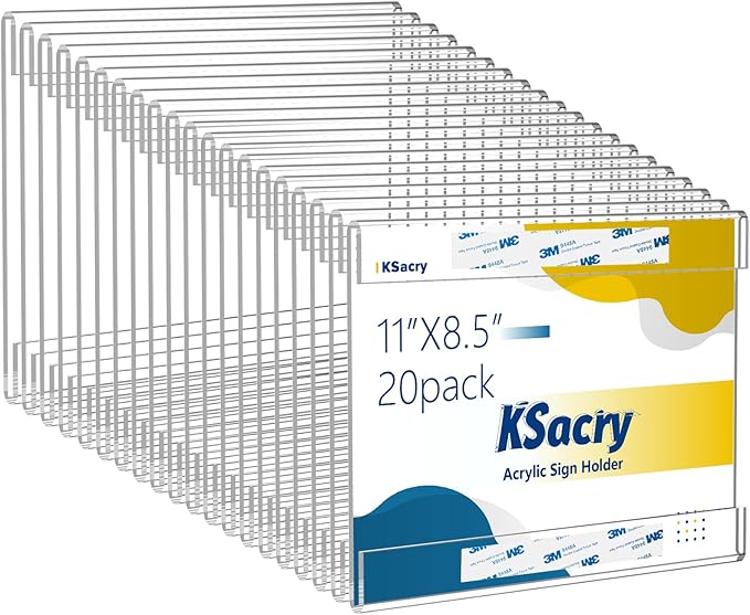 20 Pcs Acrylic Sign Holder 11 x 8.5, Horizontal Wall Mount Sign Holders with 3M Adhesive, Clear Plastic Frames Paper Display Sign Holders for Office, Home, Store, Restaurant - No Drilling