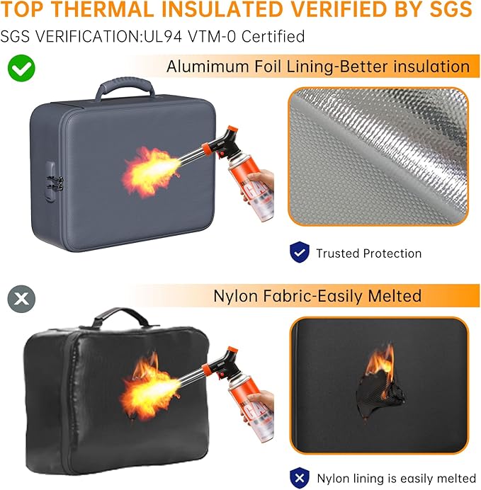 - 5200°F Fireproof & Water-resistant safe: The Upgraded important document organizer is made of thickened silicone coated fireproof cotton material and aluminum foil which withstand the temperature up to 5200℉(double safe protection). Aluminum foil lining isn’t easily melt under high temperature after several tests. It has been passed by SGS TEST(UL94 VTM-0 Certified).The bag is fireproof&Water-resistant, which can effectively protect your important documents in a fire, flood, and wet weather