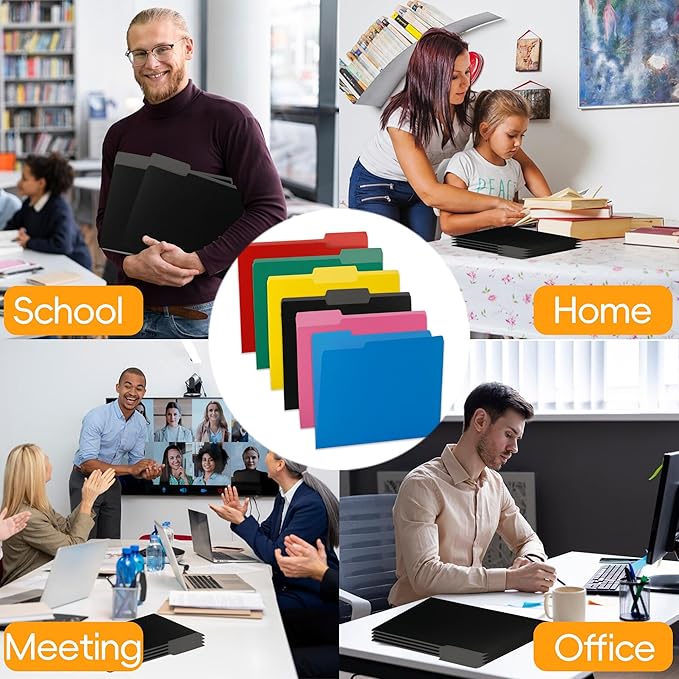 • LETTER-SIZE FILE FOLDERS:This colored file folders are a great way to store letter-size paper documents and business cards,standard 8-1/2" x 11" documents.