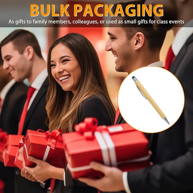250 Pack Bamboo Pens Bulk with Touch Stylus Tip Wooden Bamboo Pens Engraving Wooden Ballpoint Pen Customizable Gift Pen Bulk