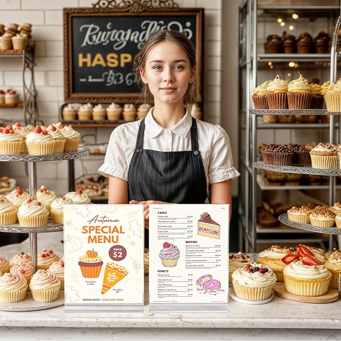 • MULTIFUNCTIONAL DISPLAY STAND---Simply insert the acrylic panel into the base to display your sign. They can display signs, menus, flyers, brochures, etc., and can be used in home, restaurant, office, trade exhibition, bar counter, vendor event.