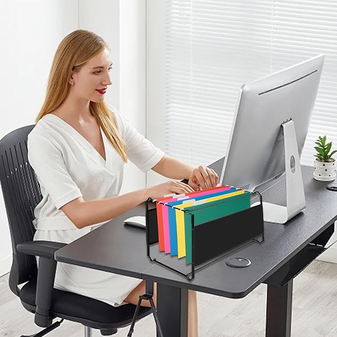 • High-Quality Construction:Made with sturdy,tear-resistant material,these hanging file folders are built for long-term use. The strong metal rods provide smooth sliding inside file cabinets, ensuring that your documents stay organized and accessible.