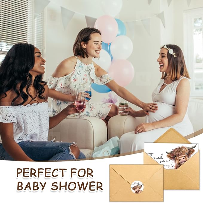• [Highland Cow Thank You Cards Set] You will get 50 thank you cards, 50 envelopes, and 50 stickers in the package. Enough to meet your different needs for different occasions such as Baby Shower, Wedding, Birthday Party, etc.