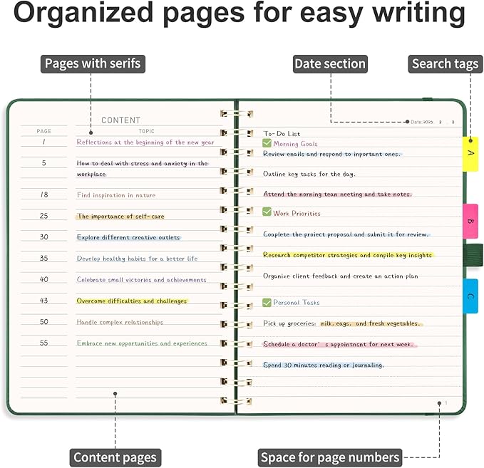 - ORGANIZED AND PRACTICAL NOTEBOOK: Our lined spiral notebook features 140 numbered pages and 4-page blank table of contents. In a medium A5 size 5.7" × 8.3", providing ample writing space while remaining lightweight and easy to carry