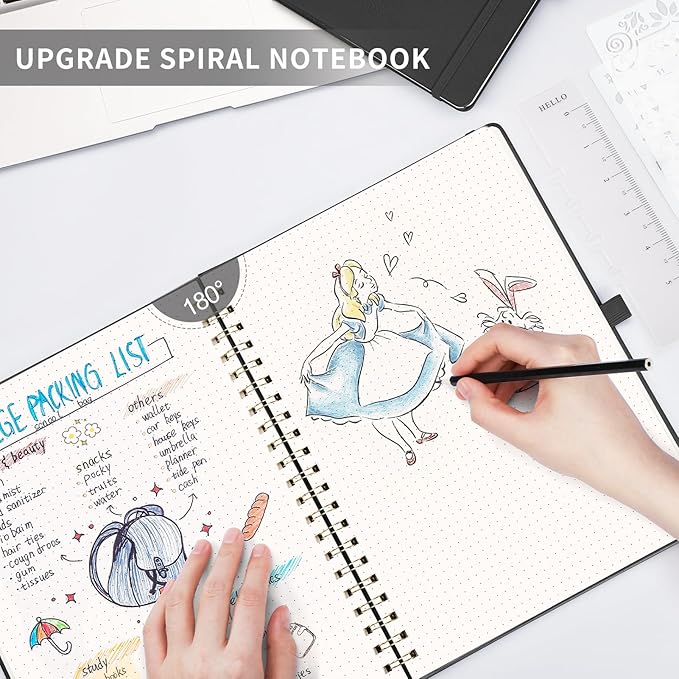 - HARDCOVER LEATHER JOURNAL: This spiral notebook features a durable, waterproof vegan leather cover that protects your notes from damage. The double-wire binding allows for easy folding and 180° lays flat for convenient writing