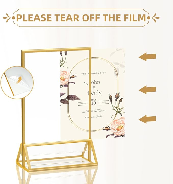 4X6 Gold Frames Double Sided Acrylic Sign Holder Tabletop Picture Frames Vertical Display Stand for Shop School Home Photos Wedding,Set of 6