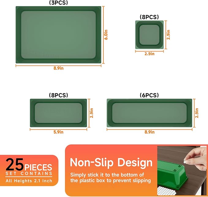 - Diversified Dimensions: The 25 Pack plastic drawer organizer set includes 4 different sizes, including 3 "x3 "(8pcs), 6 "x3 "(8 pcs), 9 "x3 "(6 pcs), 9 "x6 "(3 pcs),You can customize the combination to customize your own drawer