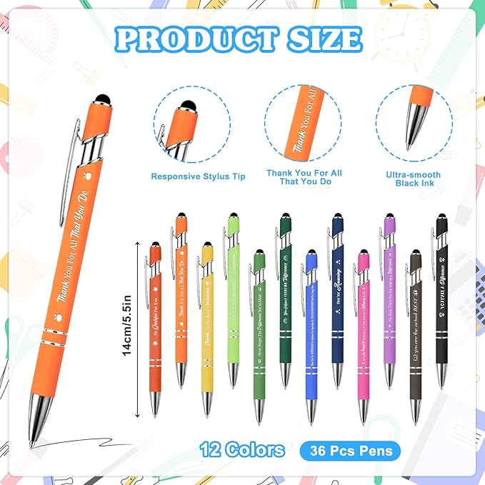 • Inspirational Quotes - Both the notebook and the pen have 12 colors, and different colors are printed with different inspirational and praise quotes, such as "Thank you for all that you do" and "Never forget the different you are made"