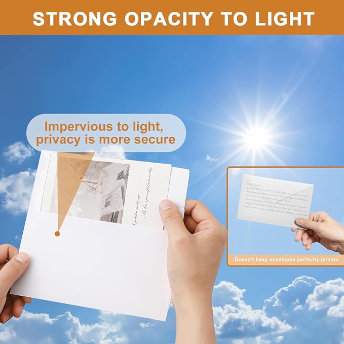 - ▶Professional Quality: Envelopes and cards are made with natural white paper, designed to give each envelope and card a sleeker and more elegant feel. These cards are made of heavyweight strong cardstock. Each card is pre-scored and made of heavy weight 300 GSM cardstock (110 lb Cover = 200 lb Text = 300 GSM) that feels thick and sturdy. Envelopes are 120 GSM weight, no see-through worries, protect your information. Each has a pull strip adhesive seal which works nicely, and does not require a glue stick