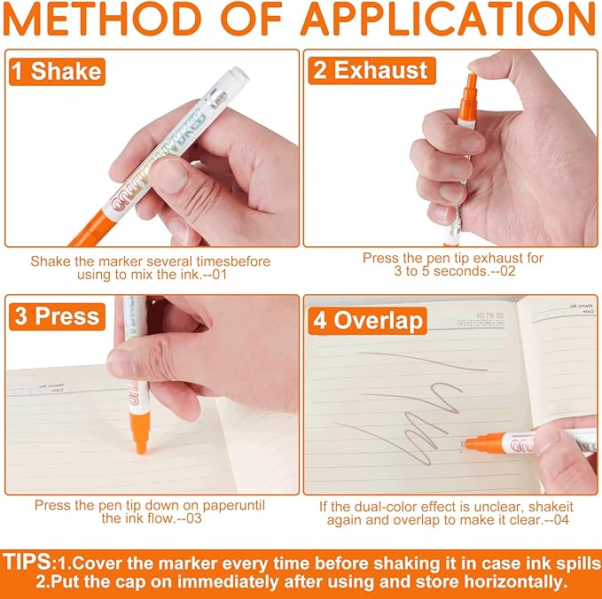 • Unique Glitter Pen: This shimmer marker set features 24 vibrant metallic colors with a 2mm medium tip. The self-outline markers create vivid metallic silver lines with colored borders through a unique technology that generates striking dual-color effects. The ink adheres well for bright, clear lines and standout designs.