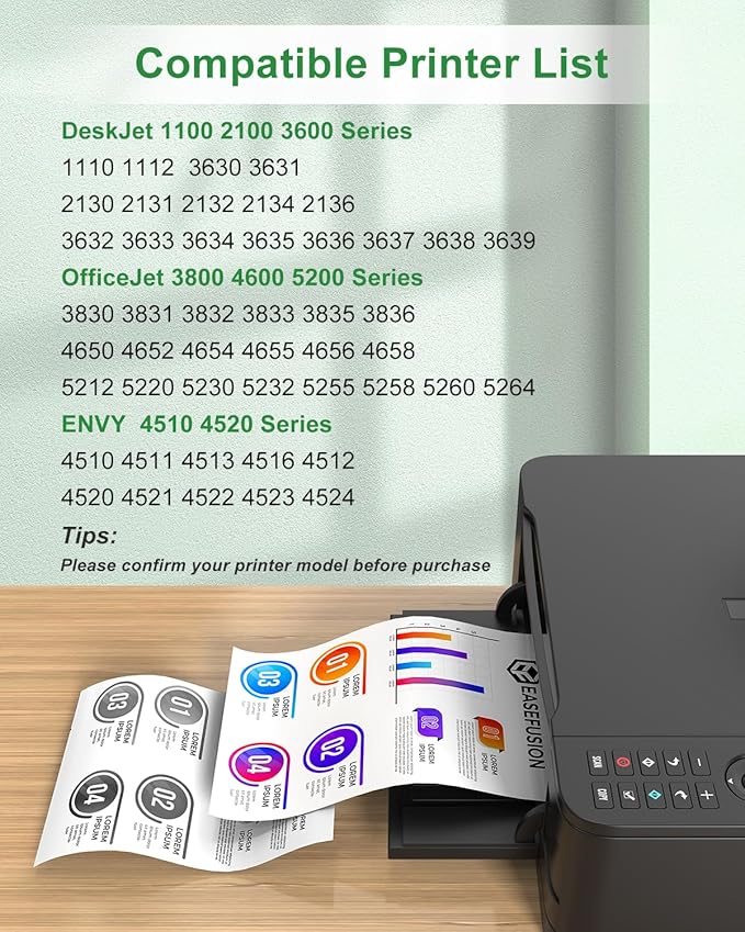 - Easy Install Fast Recognition: Our alternative to hp officejet 3830 printer ink cartridges with the latest chip technology, ensuring full compatibility and a seamless printing experience. Just simply insert the cartridge and start printing smoothly. Fully compatible with your OfficeJet 3830 3831 3832 3833 3834; 4650 4652 4654 4655 4656 4657 4658; 5200 5255 5258 printers