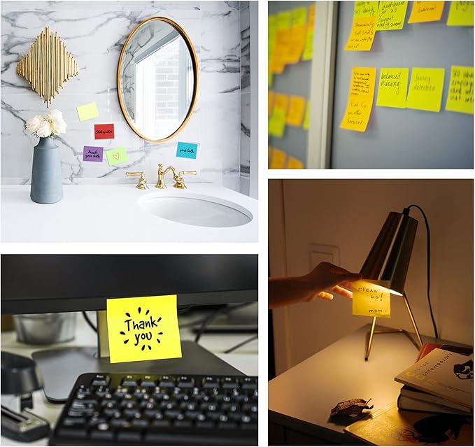 • SUPER STICKY - These sticky notes are super sticky and the adhesive is specially formulated. The super stickiness is twice as strong as normal stickiness, ensuring that sticky notes will not come off and can be removed cleanly.
