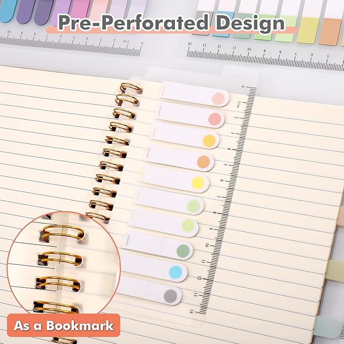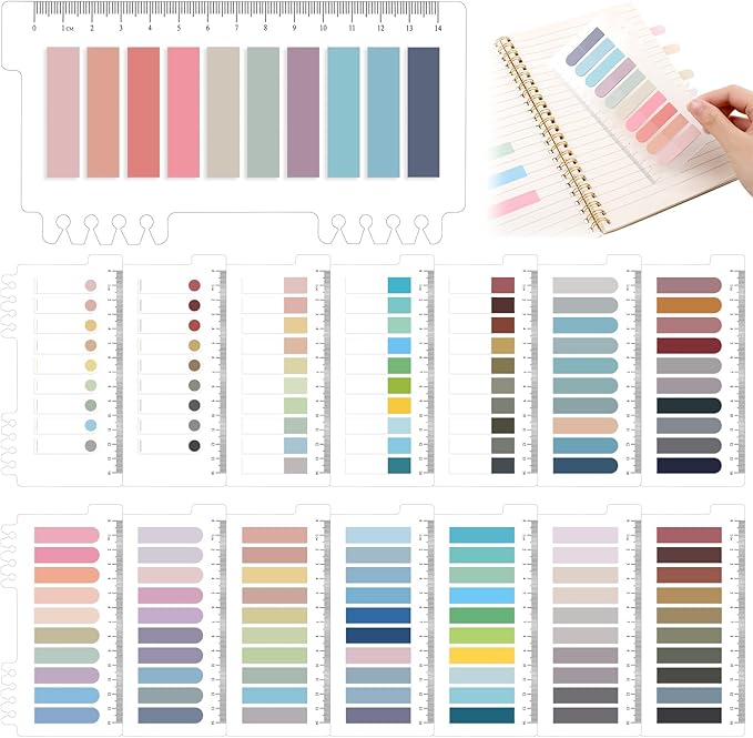 - 🗂️【Not Cause Damage】15 sets book markers with ruler for books, 1.6*0.5 inch. These clear sticky notes are sticks easily, and the adhesive stays put on the sticky tab and doesn't come off the computer. These page markers for notebooks have special stickiness, when you tear it off, it will not hurt your books.
