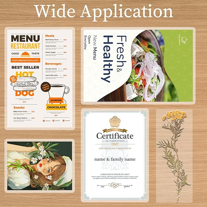 • 😊【Wide Applicability】Compatible with all thermal laminators. Not only for office work, but also for crafting. Very suitable use for documents, certificates, photos, menus, invoices, decorative cards, logos, etc.