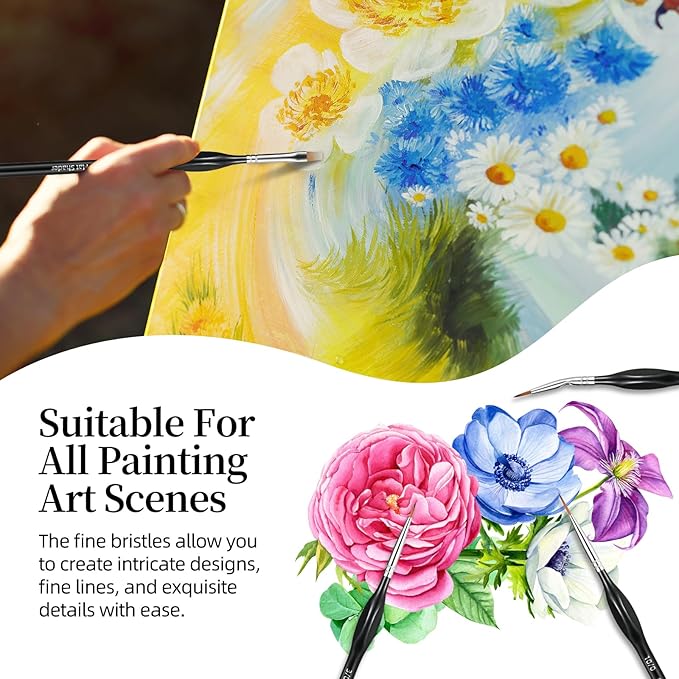 - Perfect for Precise Painting: Micro detail paint brush can handle various paintings such as acrylic, watercolor, tempera, enamel, gush, oil, face paint