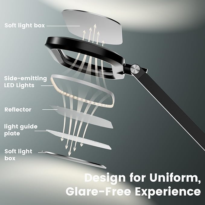 - POWERFUL & SOFT LIGHT: With 126 LED beads, we've combined fluorescent diffuser film and edge-lit technology to create a bright, soft and even light. Not only that, but our led desk lamps boast impressive specifications such as CRI ≥ 95, colour saturation Rg ≥ 95 and colour fidelity Rf ≥ 98, mimicking the effect of natural sunlight. This translates to vibrant color, true-to-life hues, enhanced reading comfort and reduced eye strain. Perfect for reading, drawing, writing, laptop video calls, workbench and home office setups